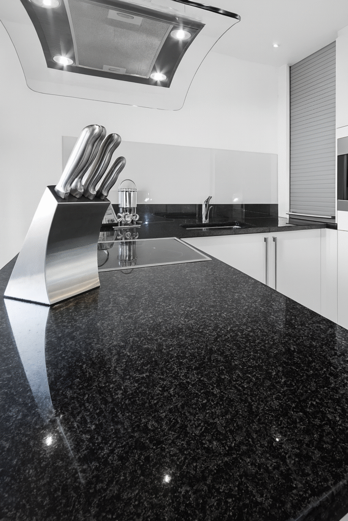 Black Pearl granite showcases a dark base with silver, grey, and bronze flecks that shimmer under light. Its elegant, subtle texture suits kitchens, commercial counters, and luxury floors. Durable, stylish, and versatile, it remains one of the most popular choices for modern interiors.