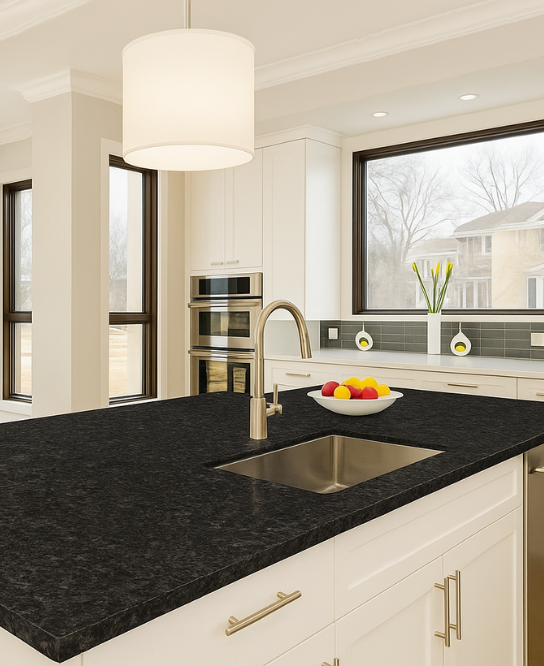 Majestic Black granite combines rich black depth with subtle grey undertones, offering a bold yet refined aesthetic. Highly durable and easy to maintain, it is ideal for countertops, staircases, and flooring. Its sleek polish reflects sophistication, while its resilience to wear makes it an excellent choice for residential and commercial designs that demand long-term performance.